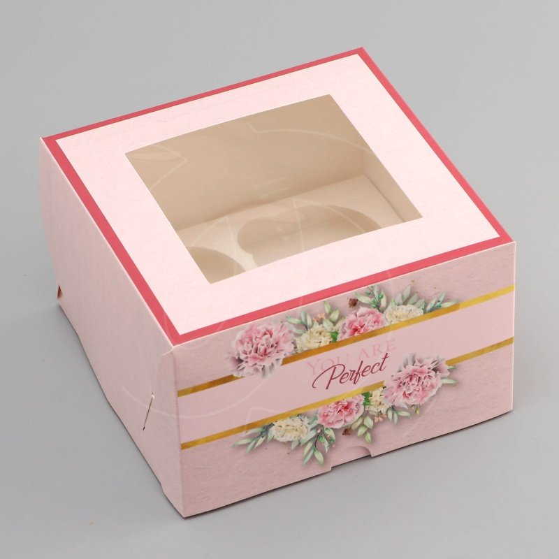 Коробка на 4 капкейка с окном "Ты идеальна" 16х16х10 см