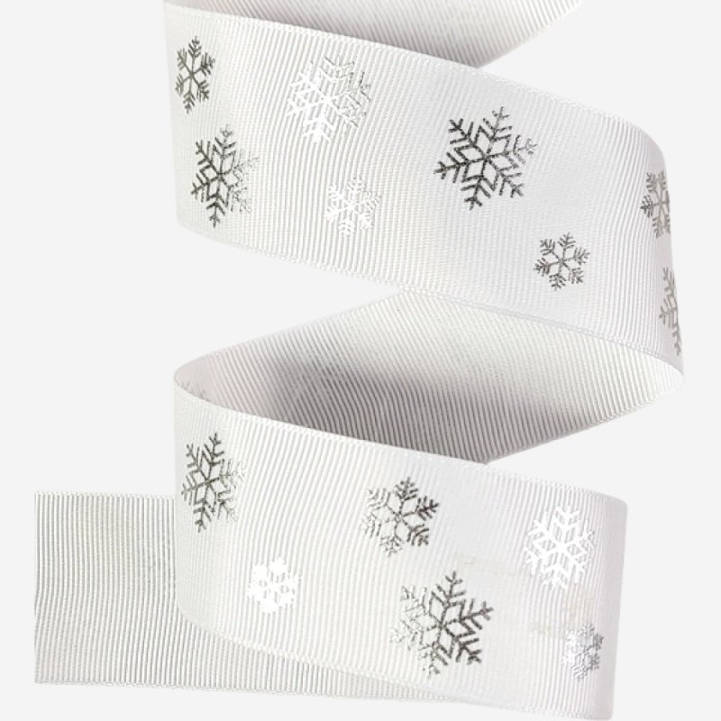 Доставка Лента для декора и упаковки Атласная "Снежинки" Белая 2,5 см из магазина в вашем городе: