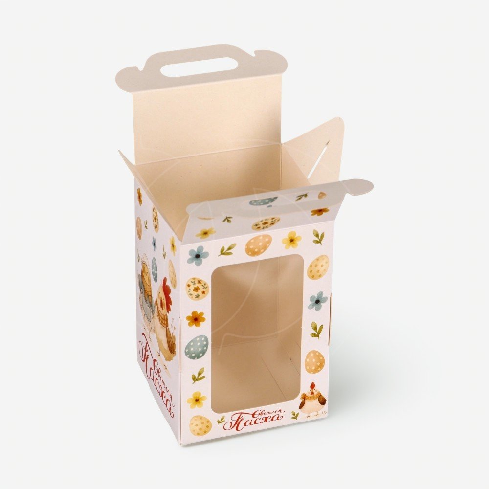 Доставка Коробка для торта/кулича с окном "Курочки" 10х10х15 см из магазина в вашем городе: