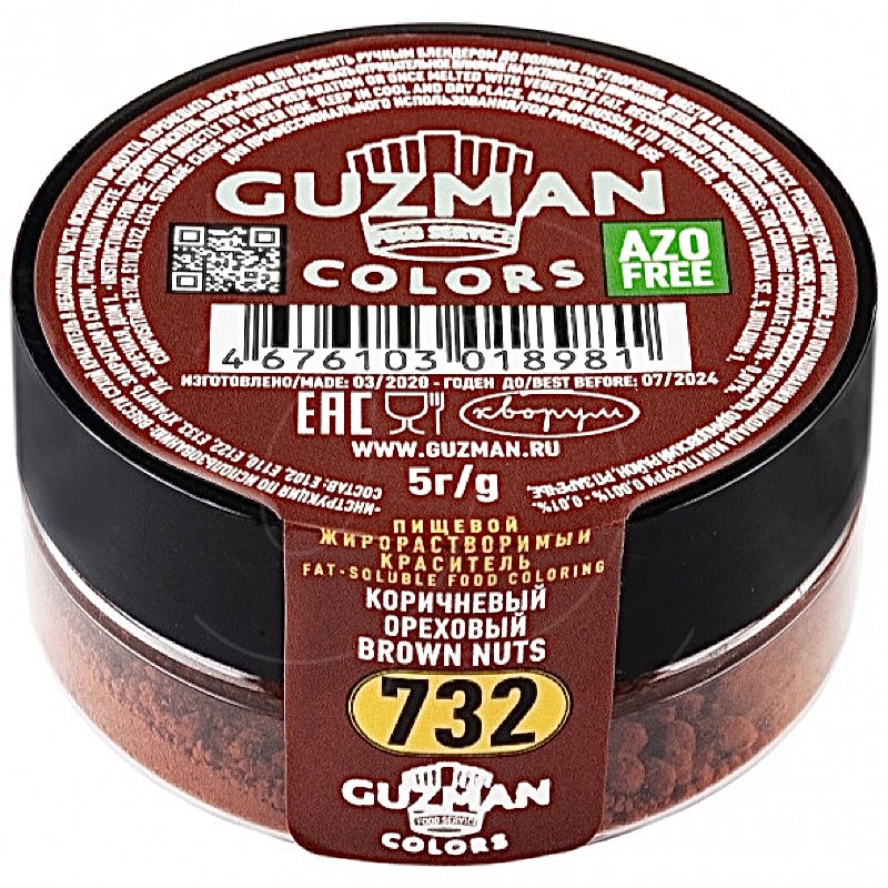 Краситель пищевой сухой жирорастворимый GUZMAN "Коричневый ореховый 732" 5 г