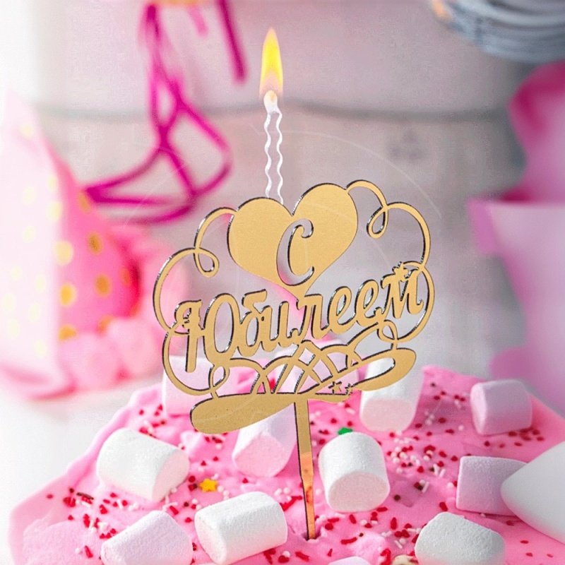 Свеча-топпер декоративная акриловая "С Юбилеем" Золото