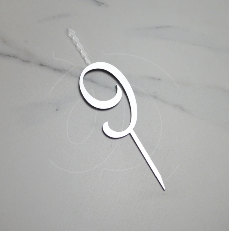 Свеча-топпер декоративная акриловая Цифра "9" Серебро