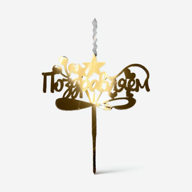 Доставка Свеча-топпер декоративная акриловая "Поздравляем" Золото из магазина в вашем городе: