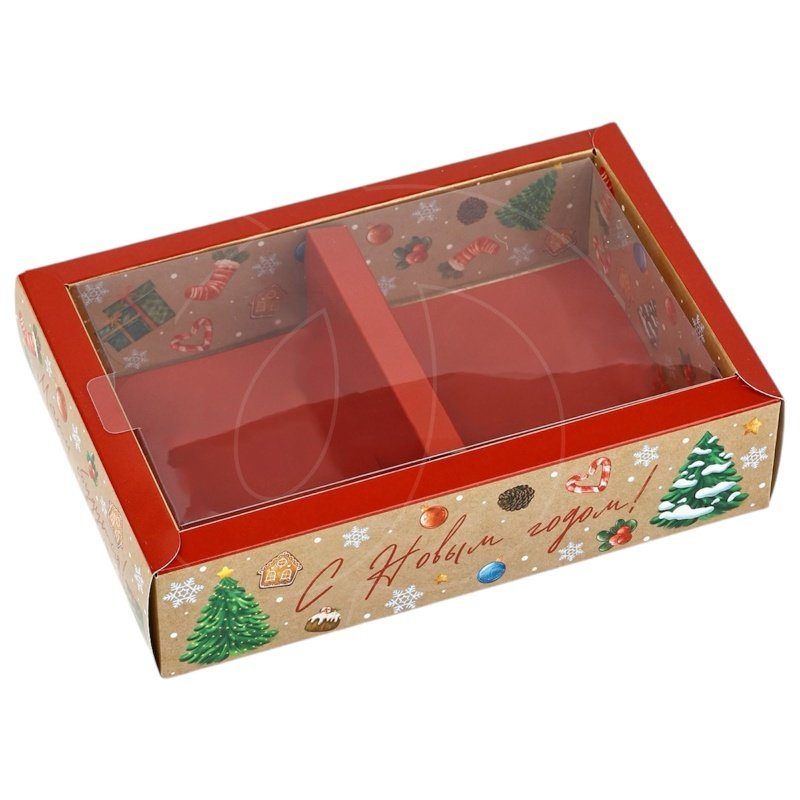 Доставка Коробка для сладостей с прозрачной крышкой двойная "С Новым годом!" 16,5х11х4 см из магазина в вашем городе:
