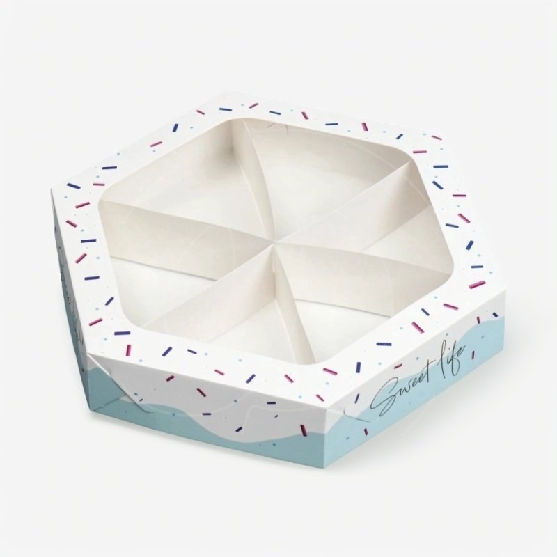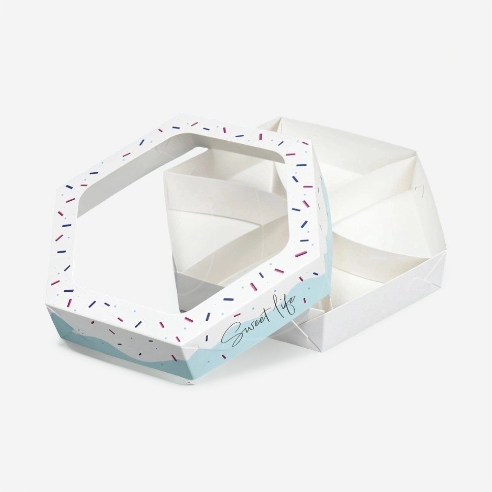 Коробка подойдет для упаковки конфет, пряников, печенья, пирожных или другого десерта.